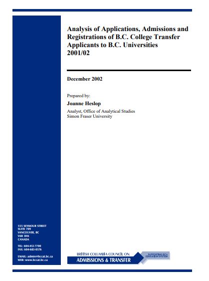 This report summarizes the multiple application, qualification, admission and registration patterns of the 6,804 college transfer students who applied for admission to at least one of four BC universities: University […]