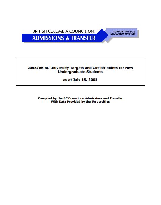 This report identifies the 2005-06 BC University Targets and Cut-off Points for New Undergraduate Students.