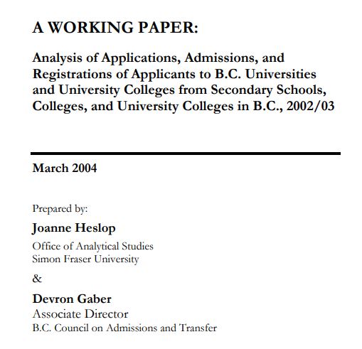 Applications, Admissions & Registrations of Applicants to BC Universities & University Colleges